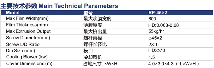 產(chǎn)品關(guān)鍵詞:RP-40×2 雙色彩條吹膜機(jī)