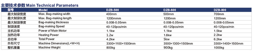 產品關鍵詞:DZB-500-800兩層連卷平口袋/背心袋制袋機
